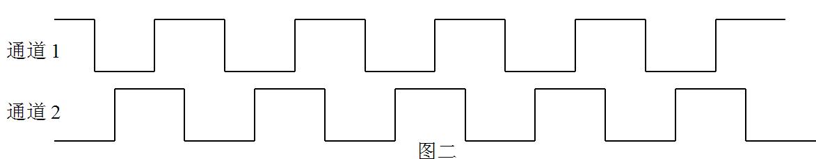 当旋转方向与图四 所示方向相反时,通道2波形将超前通道1波形90度,波形示意图如下所示: