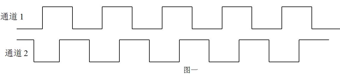按 本说明书四中应用示例安装,当旋转方向如图四所示定义为正转,输出波形为通道1超前通道2 90度,波形示意图如下所示: